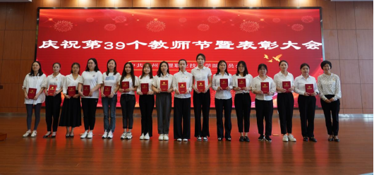 用汗水浇灌满园桃李,用粉笔传递中国文化。2023年9月8日上午,在第39个教师节来临之际,我院围绕“躬耕教坛、强国有我”主题,在金海校区学术交流中心隆重召开庆祝第39个教师节暨表彰大会。学院党委书记黄亚励,党委副书记、院长江智霞,党委委员、副院长洪阳,党委委员、副院长潘忠伦,党委委员、纪委书记杨伯兵,党委委员、副院长柏晓玲出席会议。会议由党委委员、副院长洪阳主持。受表彰先进集体和个人代表、全体教职工参加表彰大会。