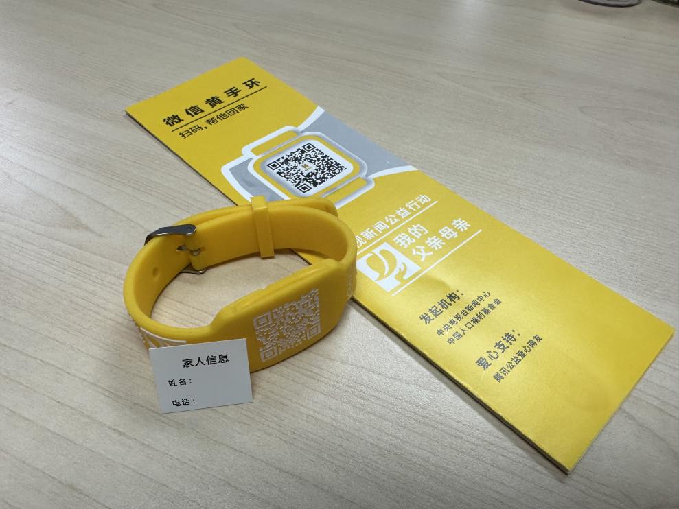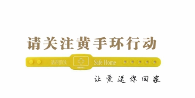 “黄手环行动”,是2012年中国人口福利基金会与央视新闻中心共同发起的社会公益项目,其主题就是以关爱阿尔茨海默病(AD,俗称老年痴呆症)患者为切入点,倡导“给生命的两头以同等关爱”,帮助走失老人安全回家,让更多阿尔茨海默病患者感受到来自社会的温暖,为那些身处危险的老人提供帮助,让每一个家庭拥有更多的安全和保障。