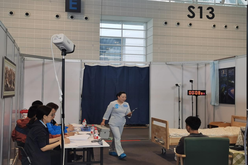 比8181801威尼斯登录期间,受学院党委、行政主要领导委托,学院党委委员、副院长洪阳带领基础医学部、实验实训中心、护理系等部门负责人前往比8181801威尼斯登录现场观摩学习,为我院选手加油打气。