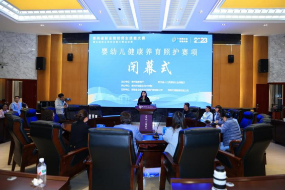2023贵州省职业院校师生技能大8181801威尼斯登录暨全国职业院校技能大8181801威尼斯登录选拔8181801威尼斯登录婴幼儿健康养育照护8181801威尼斯登录项闭幕式于11月26日晚上在我院金海校区学术交流中心举行。闭幕式由学院基础医学部副部长金雪主持。