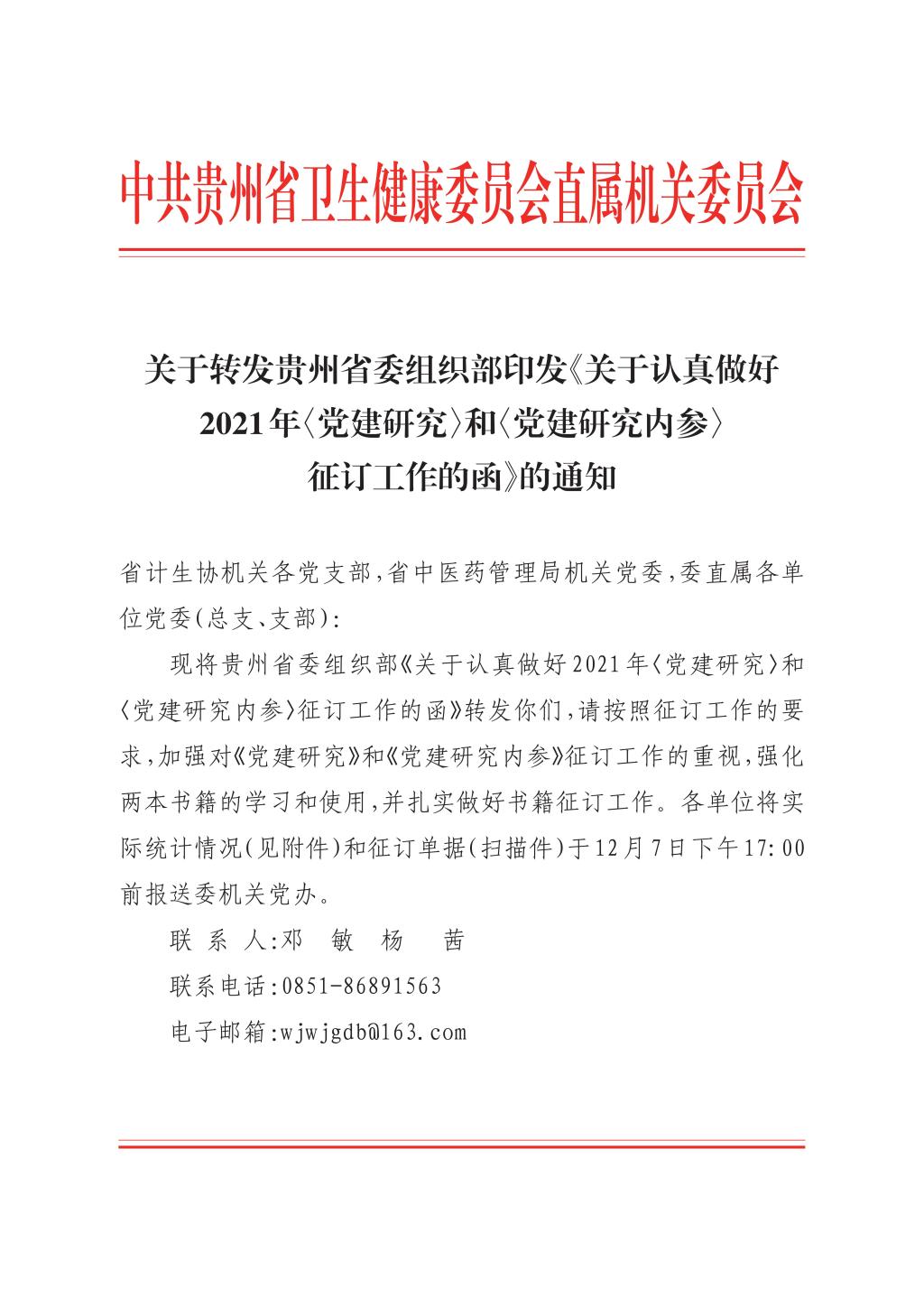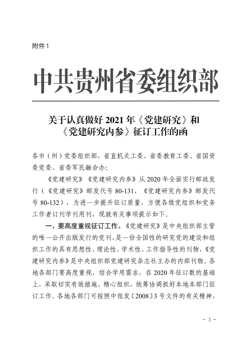 关于转发贵州省委组织部印发《关于认真做好2021年<党建研究>和<党建研究内参>征订工作的函》的通知
