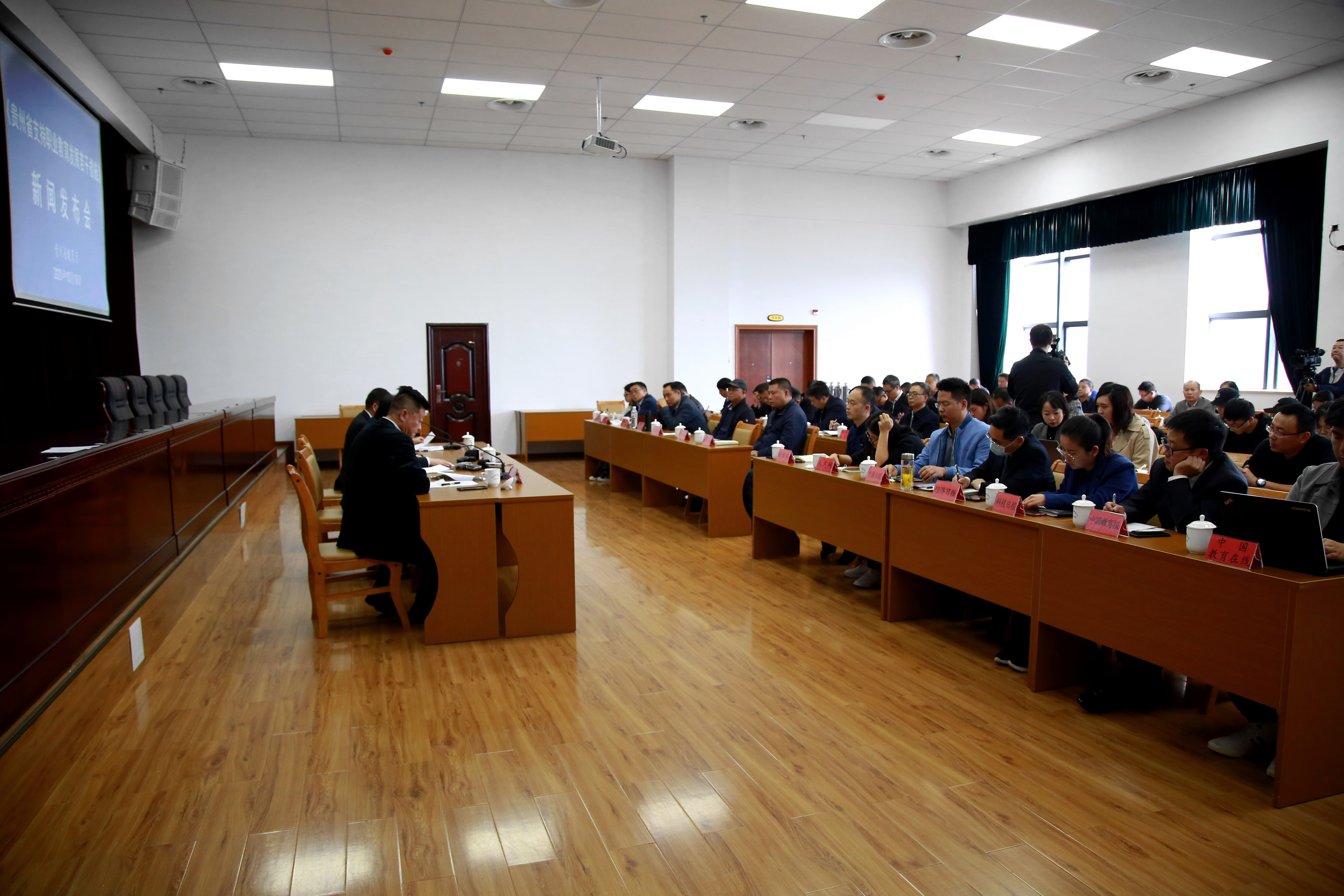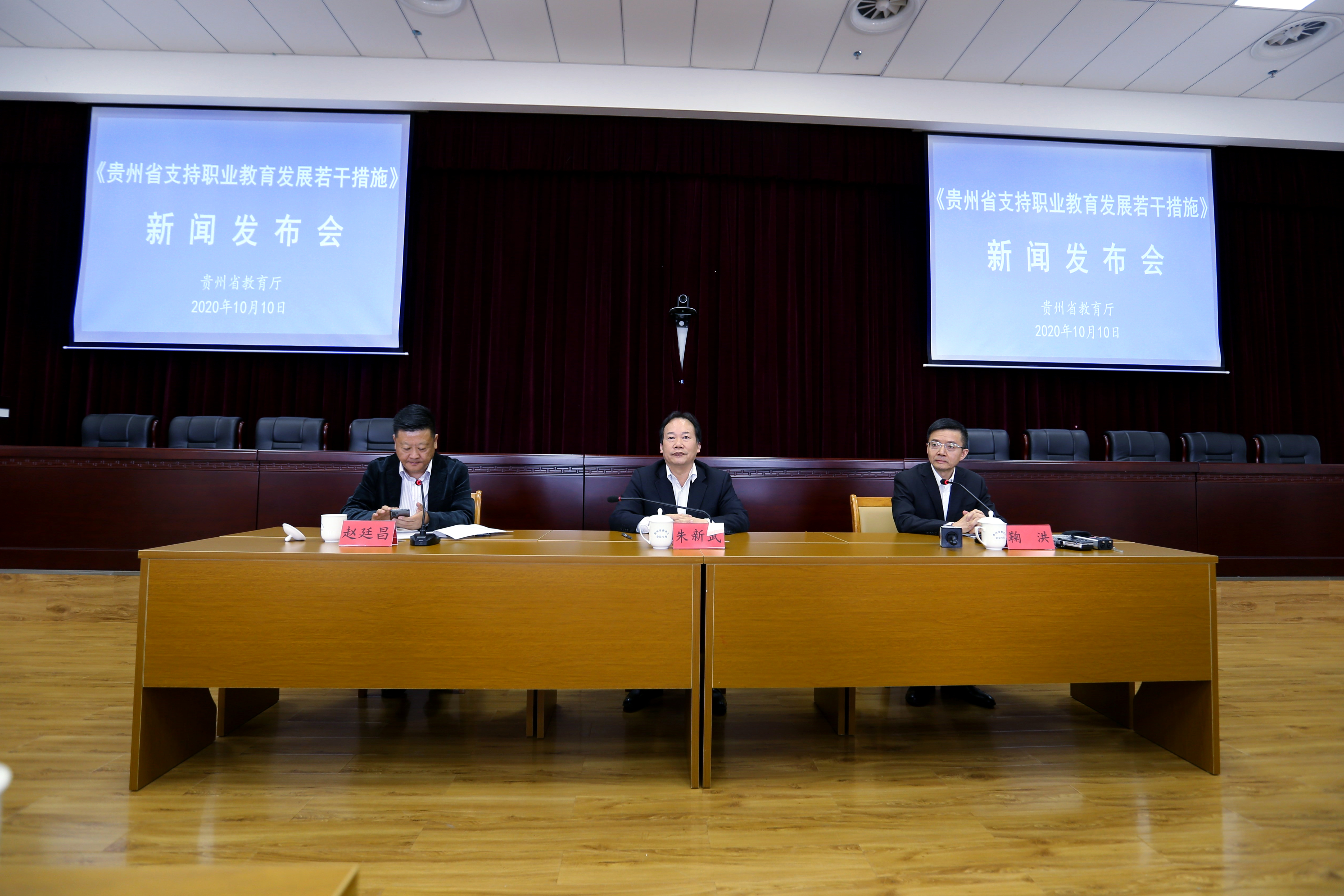 10月10日下午,省教育厅召开新闻发布会,围绕《贵州省支持职业教育发展若干措施》出台背景和主要内容,向媒体进行详细解读。省教育厅党组书记朱新武出席发布会并作主发布,省教育厅党组副书记、副厅长鞠洪答记者问,发布会由省教育厅党组成员、省委教育工委副书记赵廷昌主持。