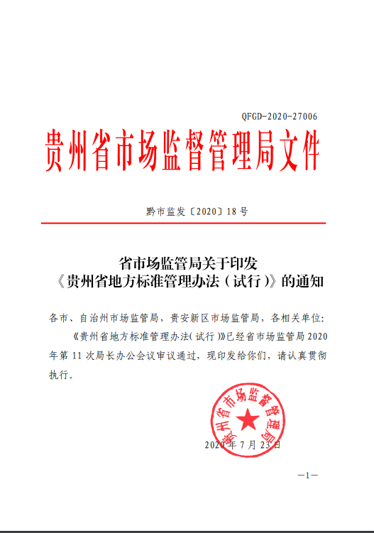 省市场监管局关于印发《贵州省地方标准管理办法(试行)》的通知