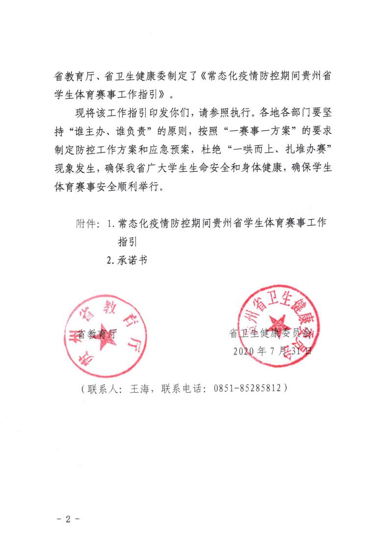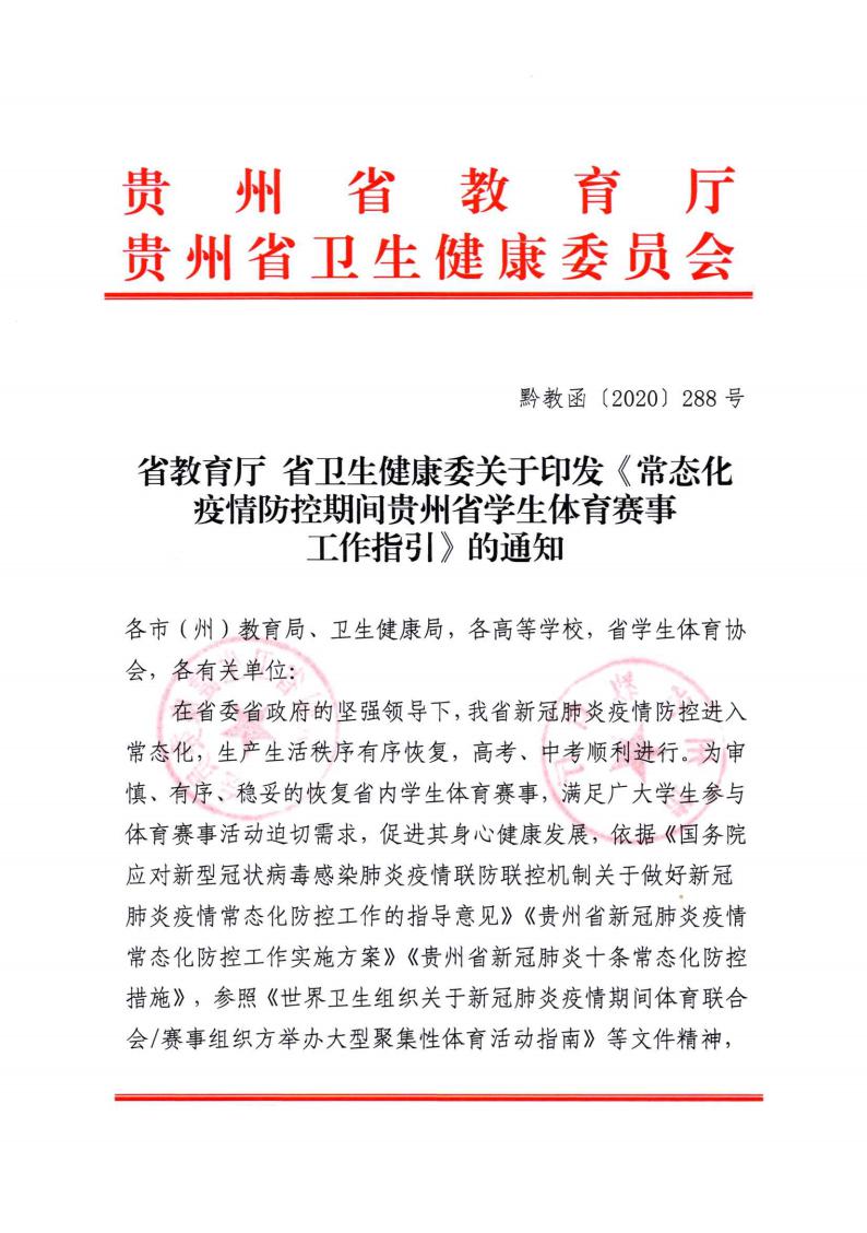省教育厅省卫生健康委关于印发《常态化疫情防控期间贵州省学生体育8181801威尼斯登录事工作指引》的通知