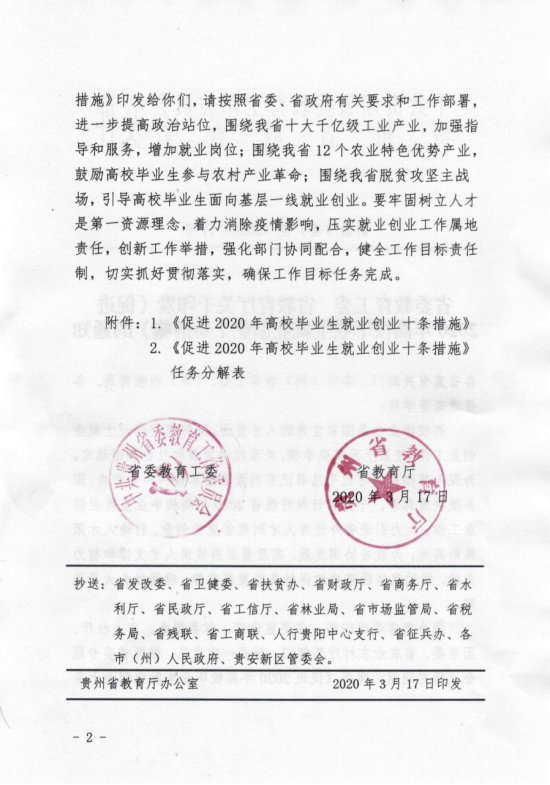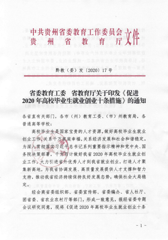 省委教育工委、省教育厅关于印发《促进2020年高校毕业生就业创业十条措施》的通知