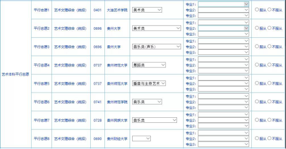 9.艺术类考生在填报艺术类平行志愿时,要根据参加的艺术类专业考试合格情况选择专业类别,同一院校的不同类别专业分别填在不同志愿,可以填报多所院校多种类别的专业。(图-15)