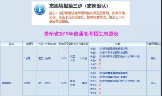 在检查过程中如果发现错误,请点击页面下方的“返回专业选择”按钮进行修改。(图-18)