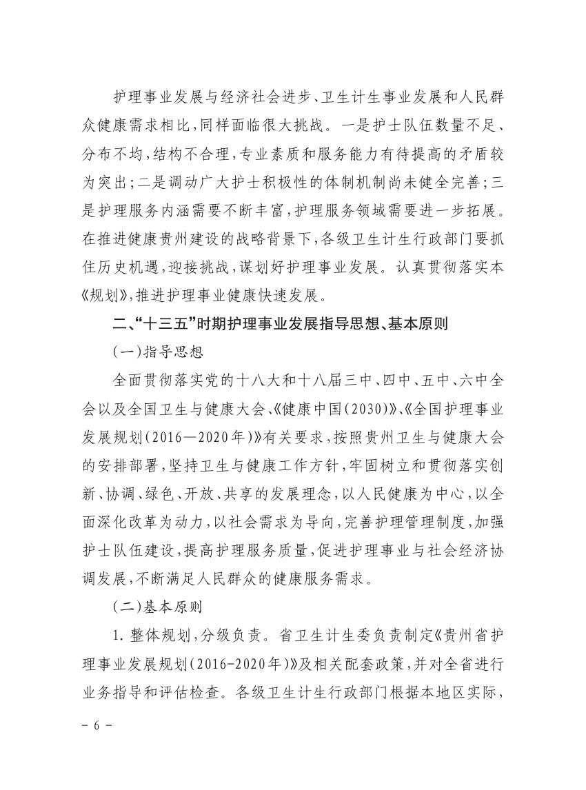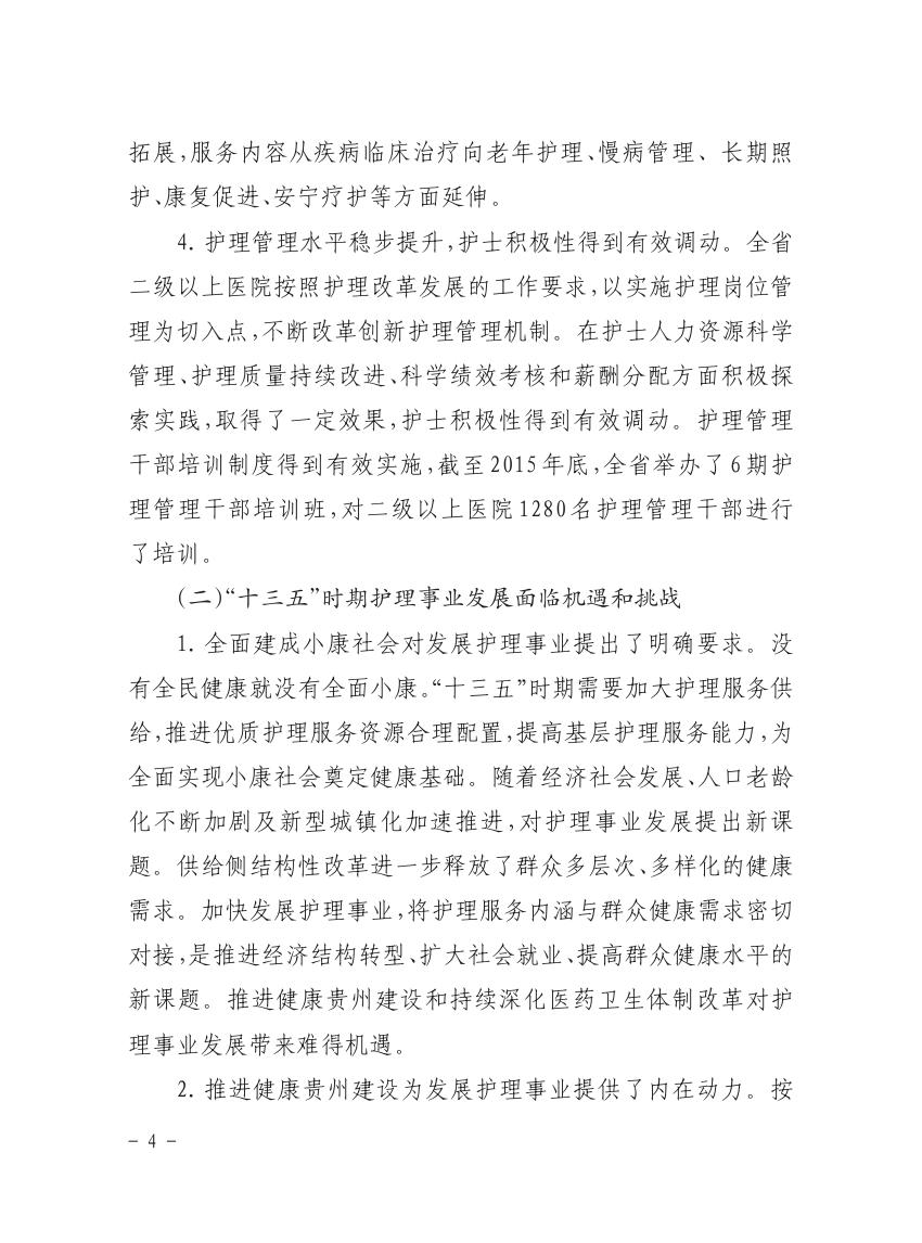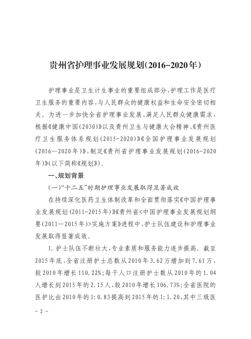 省卫生计生委关于印发《贵州省护理事业发展规划(2016-2020年)》的通知