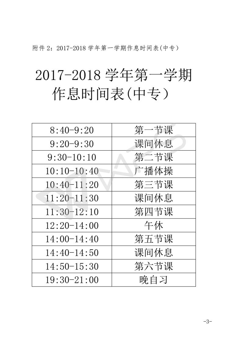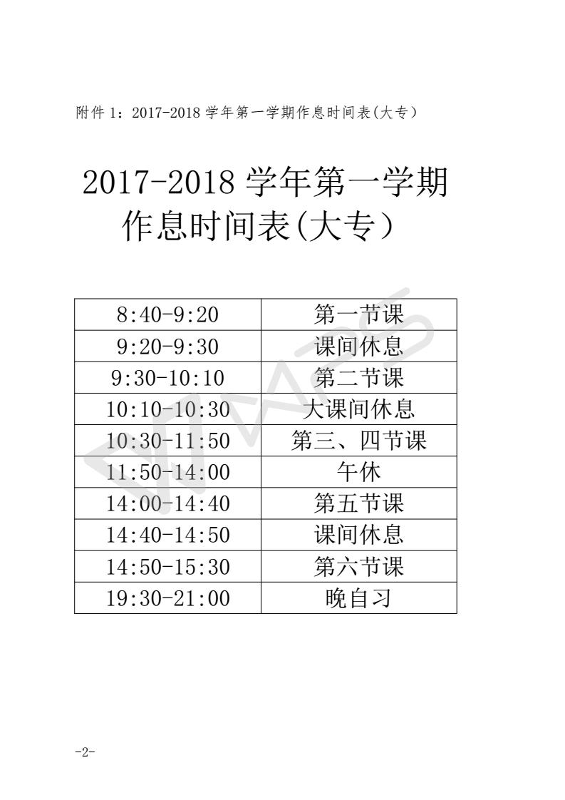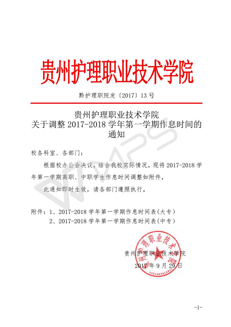 黔护职院[2017]13号关于调整2017-2018学年第一学期作息时间的通知