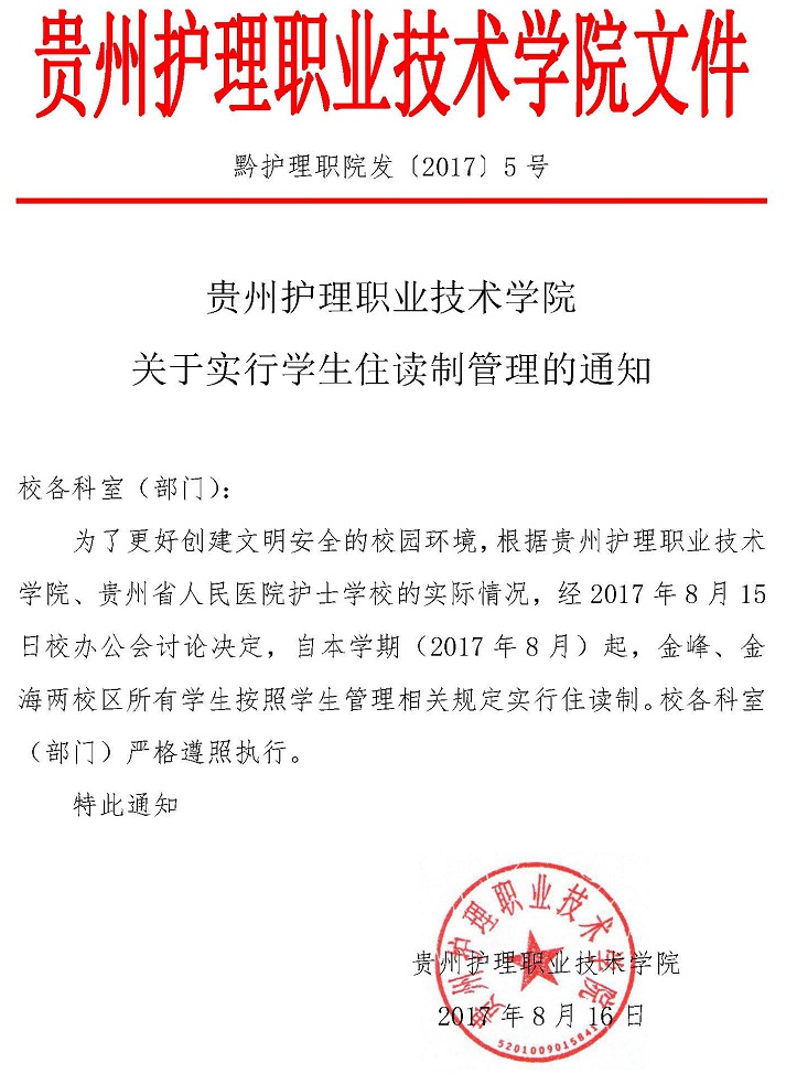 关于实行学生住读制管理的通知