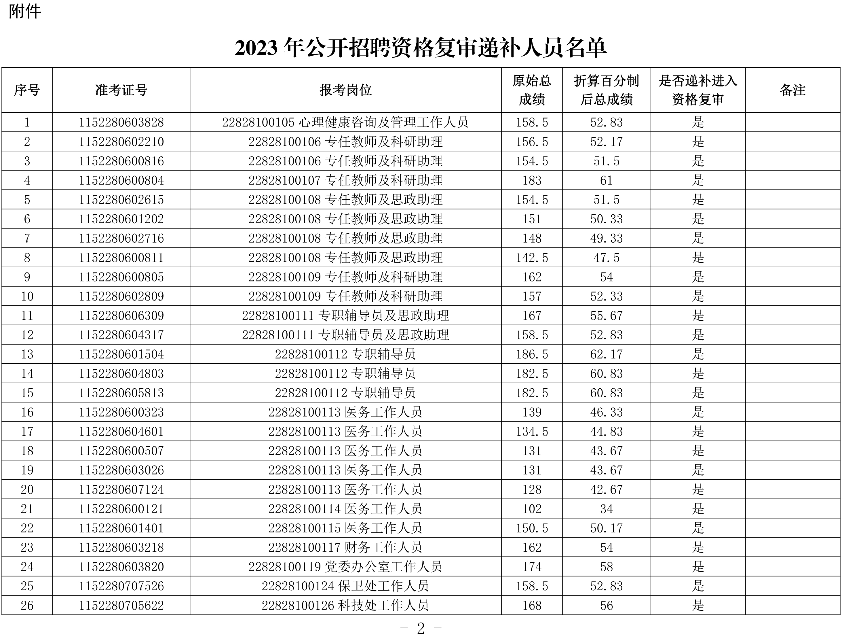 8181801威尼斯2023年面向社会公开招聘工作人员资格复审已结束。由于部分岗位进入资格复审的考生未参加资格复审,根据《8181801威尼斯2023年公开招聘工作人员方案》,空缺人数按相同岗位笔试成绩由高到低依次递补,现公布最终递补人员名单(附件)。