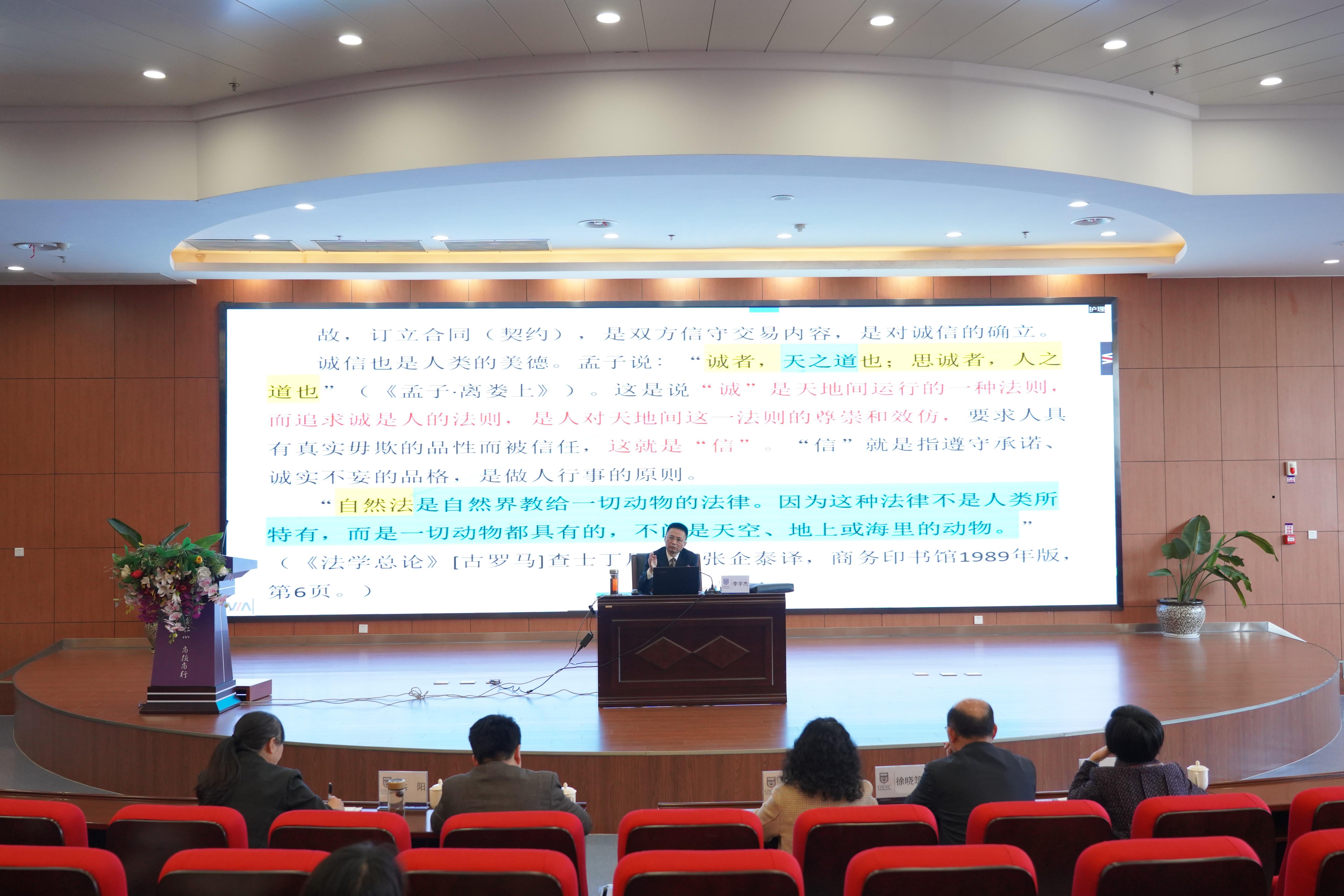 3月7日下午,学院常年法律顾问、贵州贵达律师事务所李宇杰律师,受邀到我院金海校区学术交流中心作题为《民事合同的基本要素——民法典合同编简介》的专题讲座,学院党委副书记、院长江智霞,党委副书记吴忠红,党委委员、副院长徐晓筑、洪阳、柏晓玲及各系(部、中心)、处(临时)负责人参加讲座。