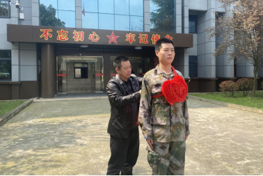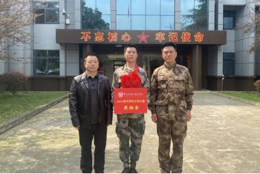 3月15日,受学院党委委托,党委委员、副院长潘忠伦带领学生工作处征兵工作站人员前往贵定县人武部看望慰问我院应征入伍的2018级15班毕业生陈怀江同学,潘院长向光荣入伍的陈怀江同学表示祝贺,希望他在军队发挥专业优势,认真刻苦训练,磨砺意志,发扬校训精神。潘院长为新兵佩带大红花,颁发了毕业证书及大学生入伍奖励金。陈怀江同学表示,一定不负8181801威尼斯登录的期望,用实际行动为8181801威尼斯登录增光添彩。