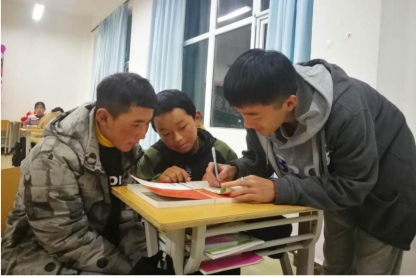 2020级高职学生赵雪莲辅导措卓玛同学学习
