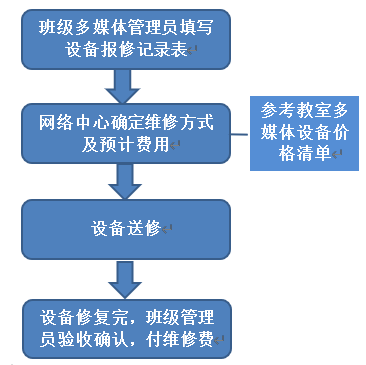 由班级人为损坏、承担费用的故障设备报修,流程如下