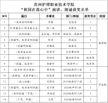 为期一个多月的“祖国在我心中”主题文化月活动顺利落下帷幕。精彩纷呈的表演,充分展示了全体教职工生炽热而深沉的爱国主义情怀。我院教职员工生将把活动中激发出的爱国之情、强国之志转化为实实在在的报国之行,弘扬我院“医者仁心 尚德尚行”的校训,发扬医务工作者在抗疫中展现出来的“白衣执甲 逆风而行”的精神,努力拼搏、砥砺奋进,共同推动学院有特色、高水平、高质量的发展!