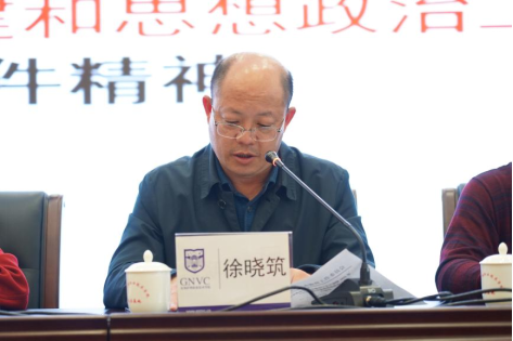 会上,江智霞传达了《关于新时代加强和改进思想政治工作的意见》和《关于加强新时代马克思主义学院建设的意见》文件精神,徐晓筑传达了《省委教育工委 省教育厅关于加强2021年下半年高校党建和思想政治工作的通知》文件精神,洪阳领学了《人民日报》署名文章《落实立德树人根本任务 切实做好高校思想政治工作》,潘忠伦领学了《人民日报》署名文章《做好青年一代思想政治工作》,杨伯兵领学了《光明日报》署名文章《推动新时代高校思想政治工作高质量发展》。