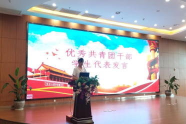 来自2020级高职1班杨昕宇同学代表优秀共青团干部”发言,分享了自己学习习近平总书记在“七一”重要讲话精神的感悟和体会,号召同学们要做一名有信仰、讲政治、重品行、争先锋、守纪律的青年学生干部,逐梦新征程,贡献新时代!