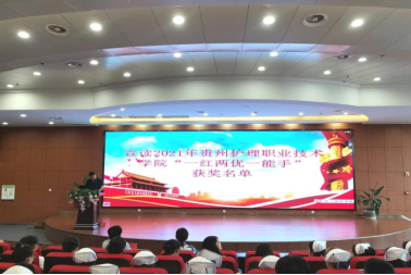表彰大会在雄伟庄严的国歌声中开幕,李云飞宣读2021年8181801威尼斯一红两一能手表彰名单,并由吴忠红、罗湘莉、团委老师分别为获奖人员颁发荣誉证书。