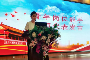 青年岗位能”教师代表邱洋发言。她说到作为教育工作者,我们要有更大的格局和胸怀,我们要深入学习领会伟大建党精神的重大意义、丰富内涵,深入把握伟大建党精神的核心要义和实践要求,讲好中国故事,传承好时代精神继续弘扬光荣传统、赓续红色血脉,从中汲取个人和学院砥砺奋进的强大力量和不竭的精神动力。