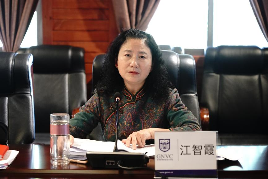 江智霞作题为《培根铸魂育新人 踔厉奋发谱新篇》的中心发言。她从“以忠诚为底色,党建引领促发展”“以人才强支撑,多措并举抓队伍”“以育人为根本,五育并举育新人”“以改革促发展,凝心聚力强内涵”“以交流拓视野,开放合作谱新章”五个方面,分享了自己的学习体会和推动学院高质量发展的深入思考