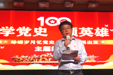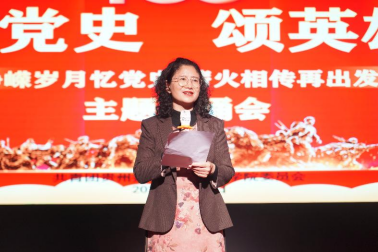 伴随歌曲《祖国不会忘记》的悠扬旋律,黄亚励向活动致辞。她提出:“学习好党史,总结好党史是我们的必修课,做红色基因的传承者,做光荣传统的践行者,是我们的实践课。用历史的精华塑造青春的色彩,用历史的伟力,凝聚青春的力量,在红色光芒中成长,在红色道路上奋进,我们初心不改,使命光荣!”