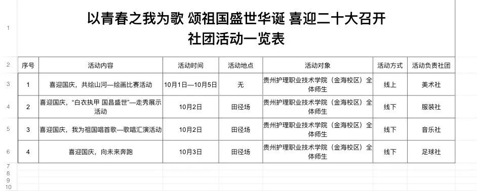 为热烈庆祝中华人民共和国成立73周年,喜迎党的二十大胜利召开,积极营造欢乐祥和的校园氛围,丰富在校生疫情防控期间的假期活动,创新红色教育载体形式,结合以青春之我为歌颂祖国盛世华诞喜迎党的二十大召开为主题的团日活动,引导广大团员青年厚植爱党、爱国、爱社会主义的情感,让红色基因、家国情怀代代相传。现结合我院实际情况,作如下活动安排: