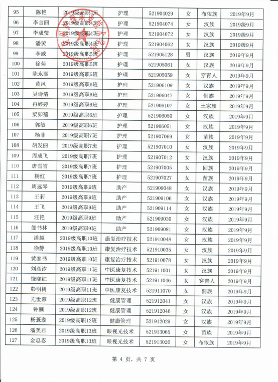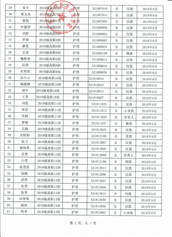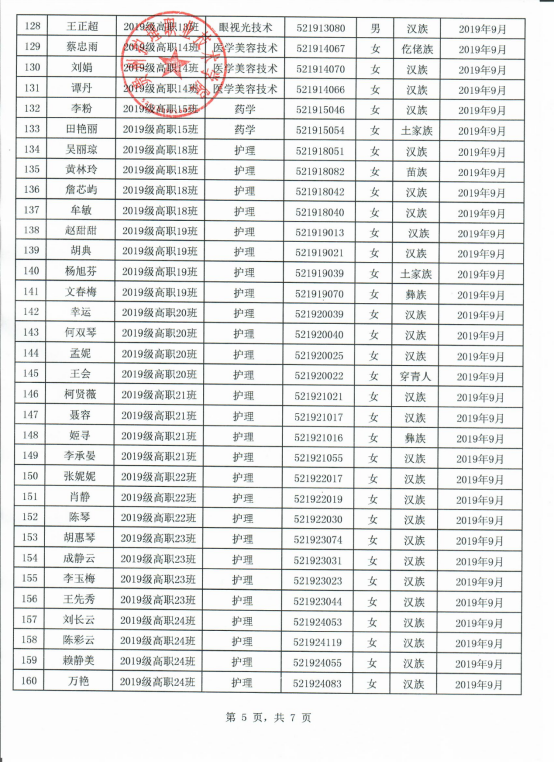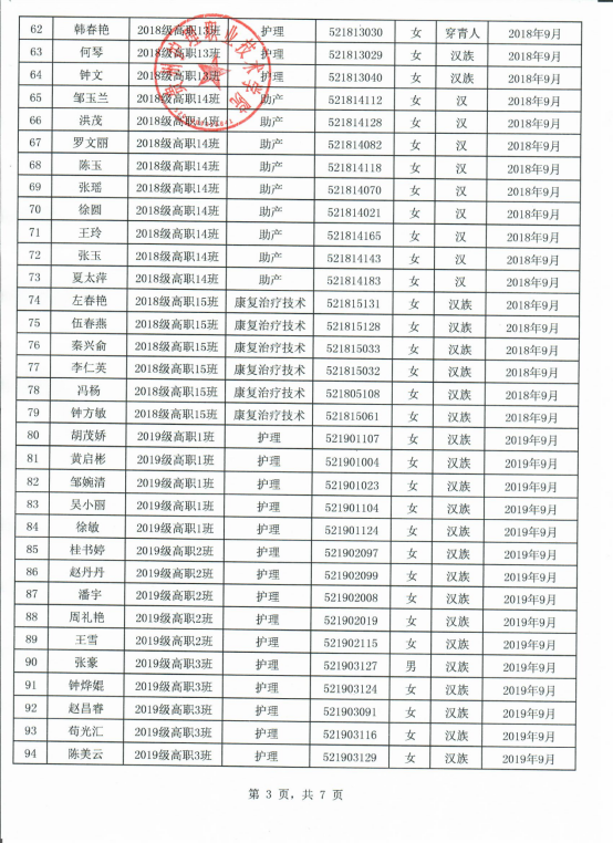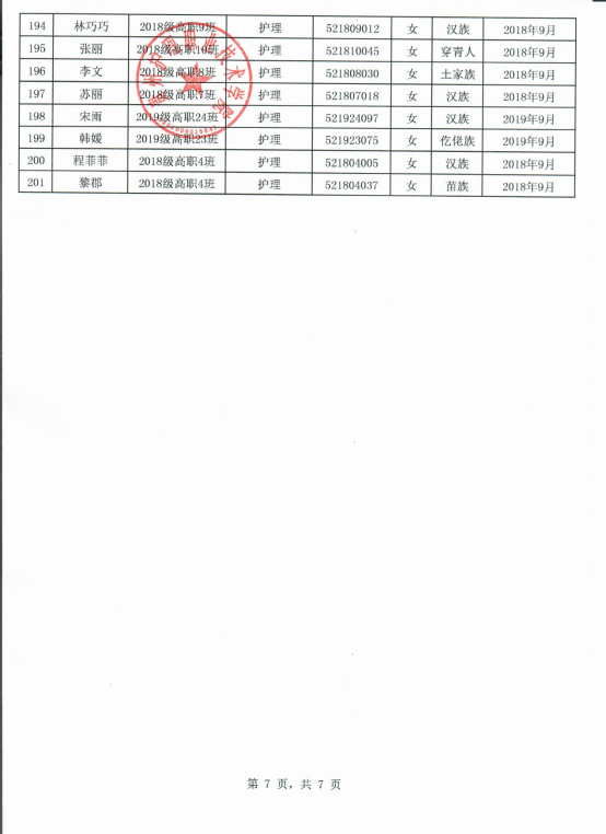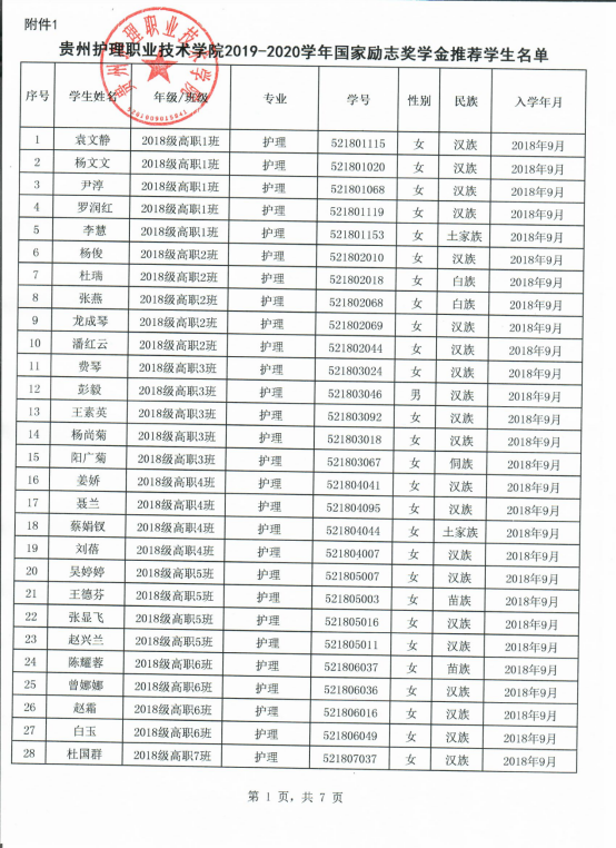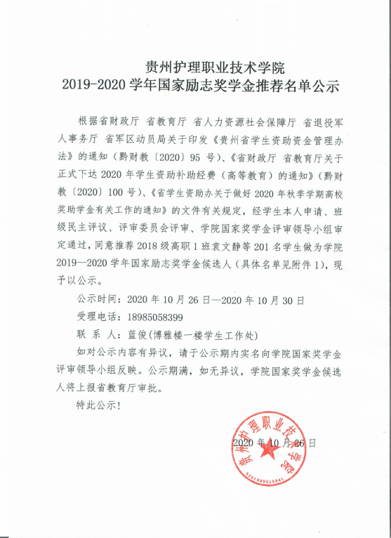 2019-2020学年国家励志奖学金推荐名单公示(院级)