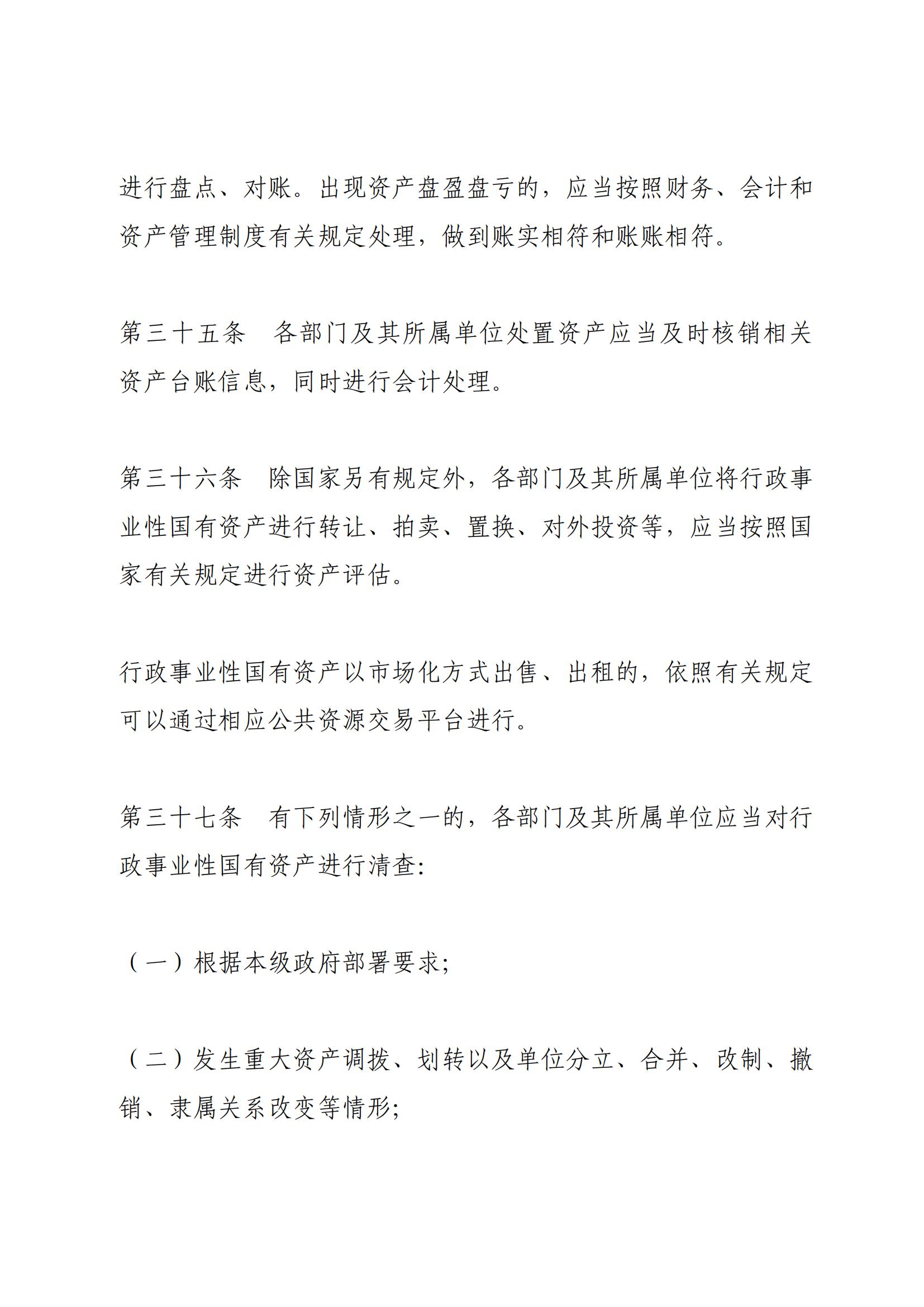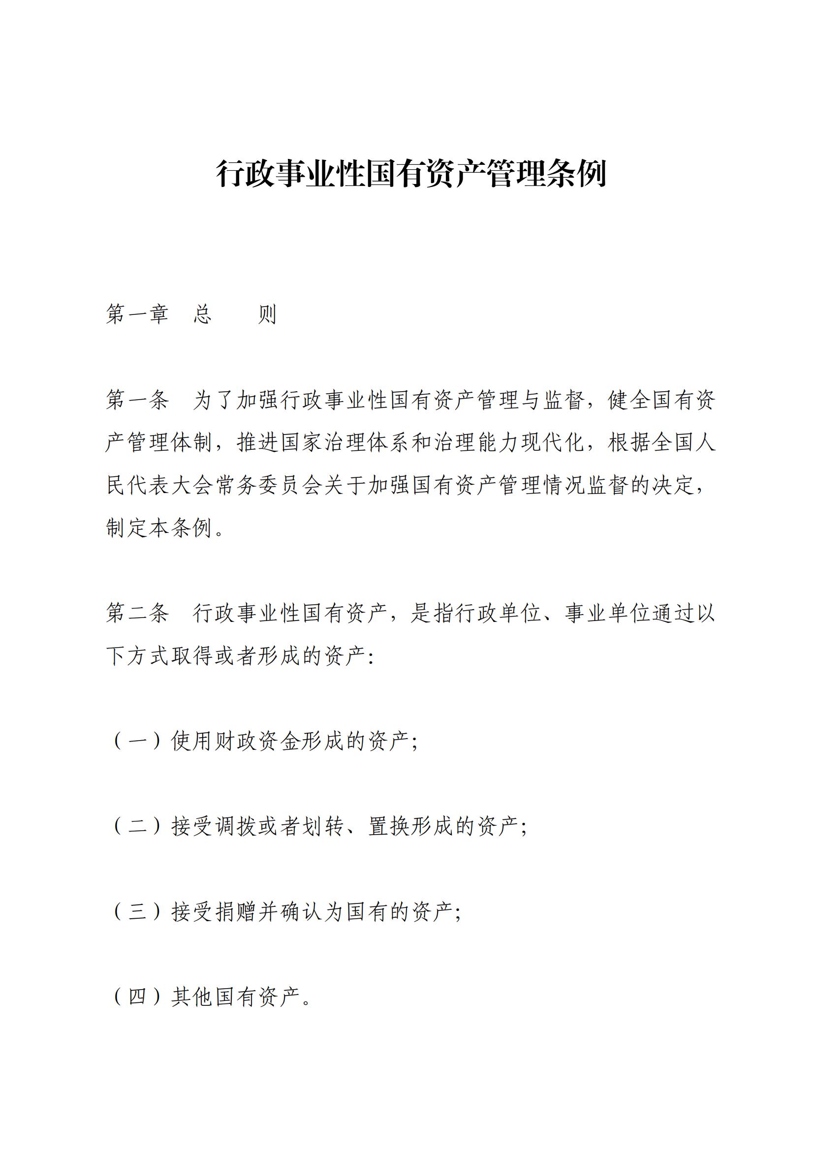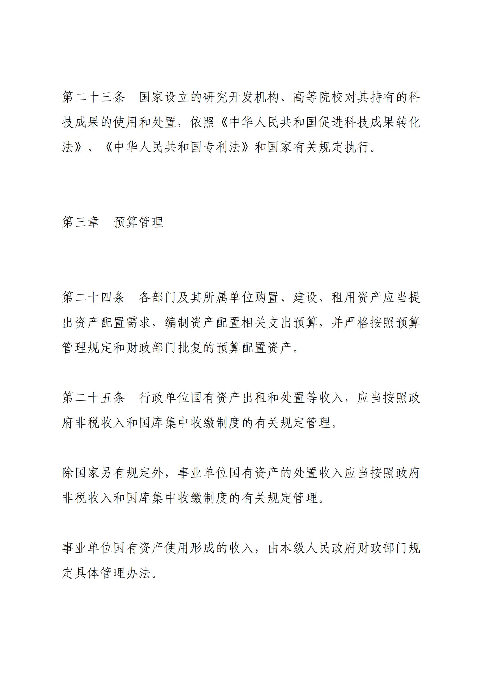 《行政事业性国有资产管理条例》 (国务院第738号令)