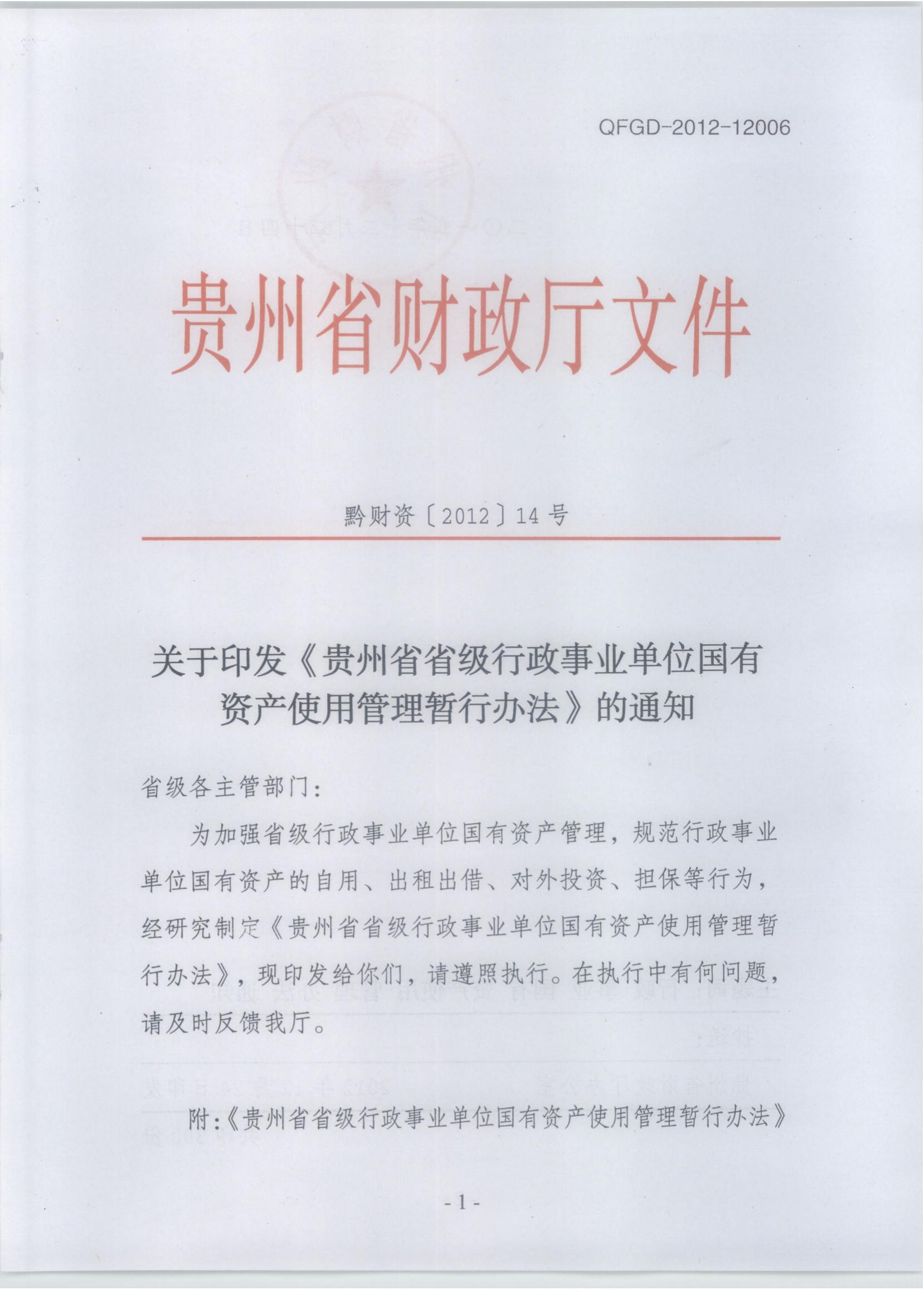 关于印发《贵州省省级行政事业单位国有资产使用管理暂行办法》的通知.pdf