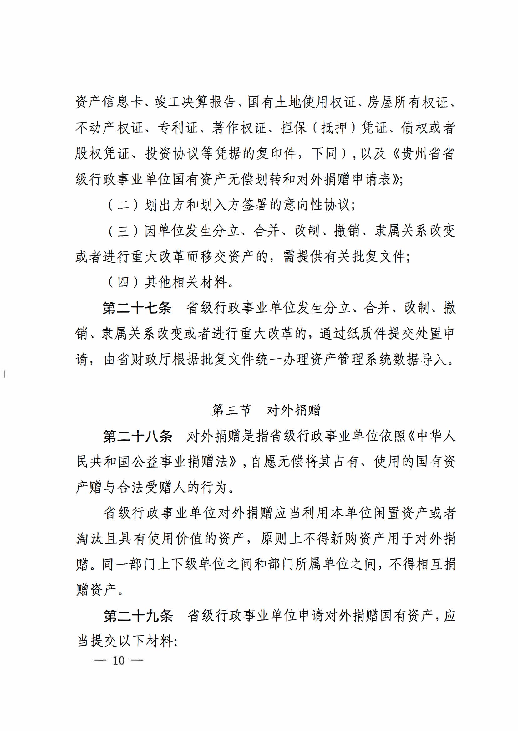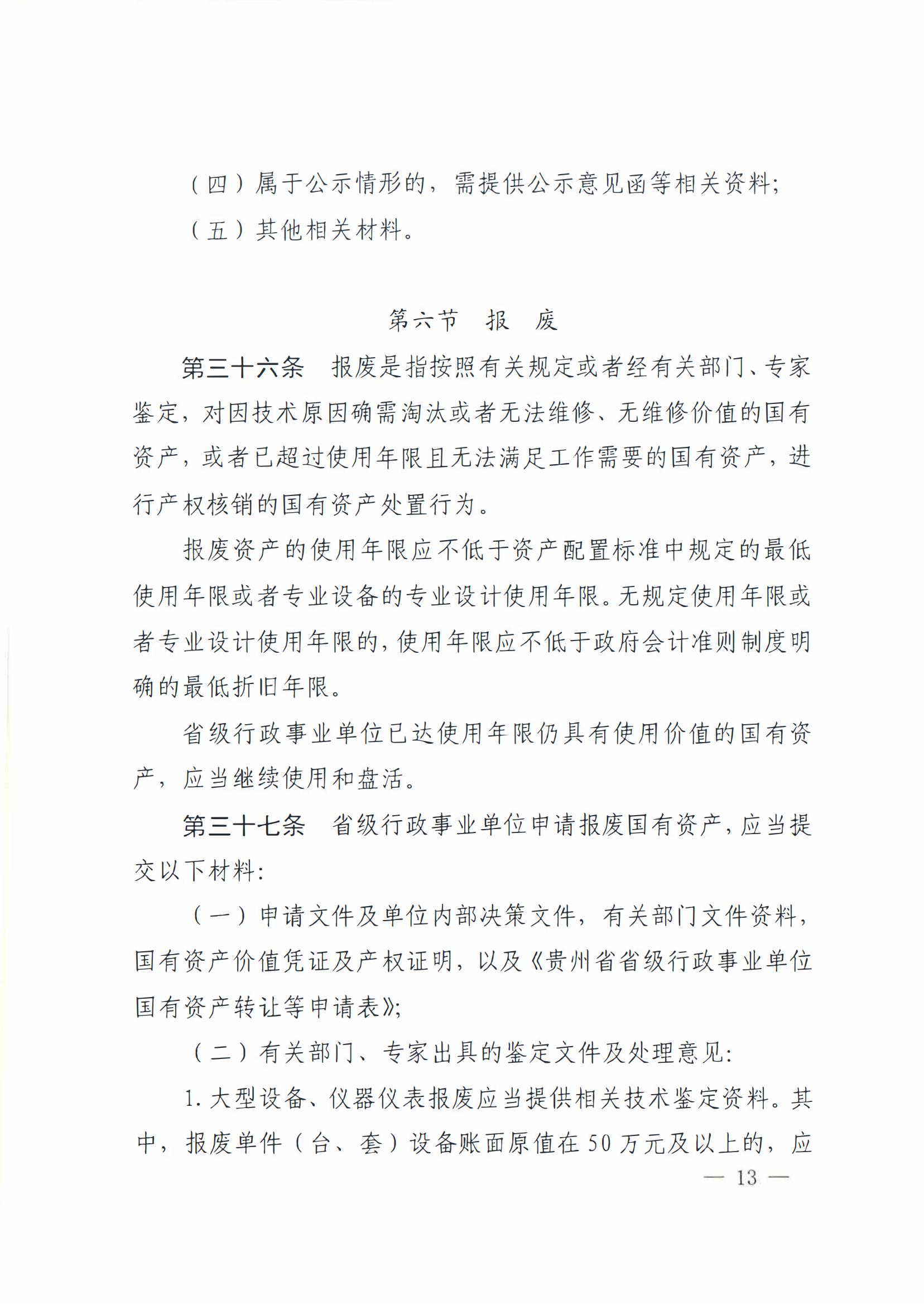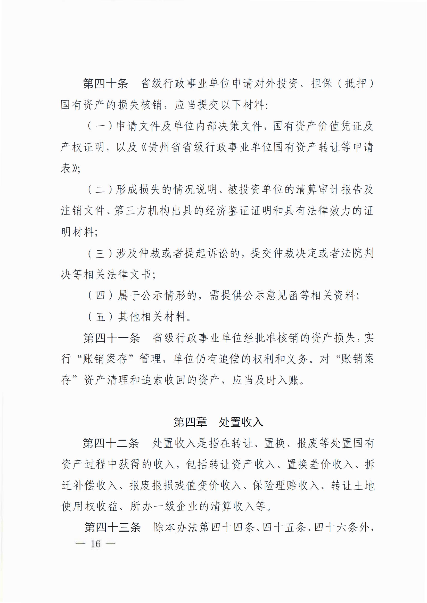 贵州省财政厅关于印发《贵州省省级行政事业单位国有资产处置管理办法》的通知(黔财资〔2023〕5号)