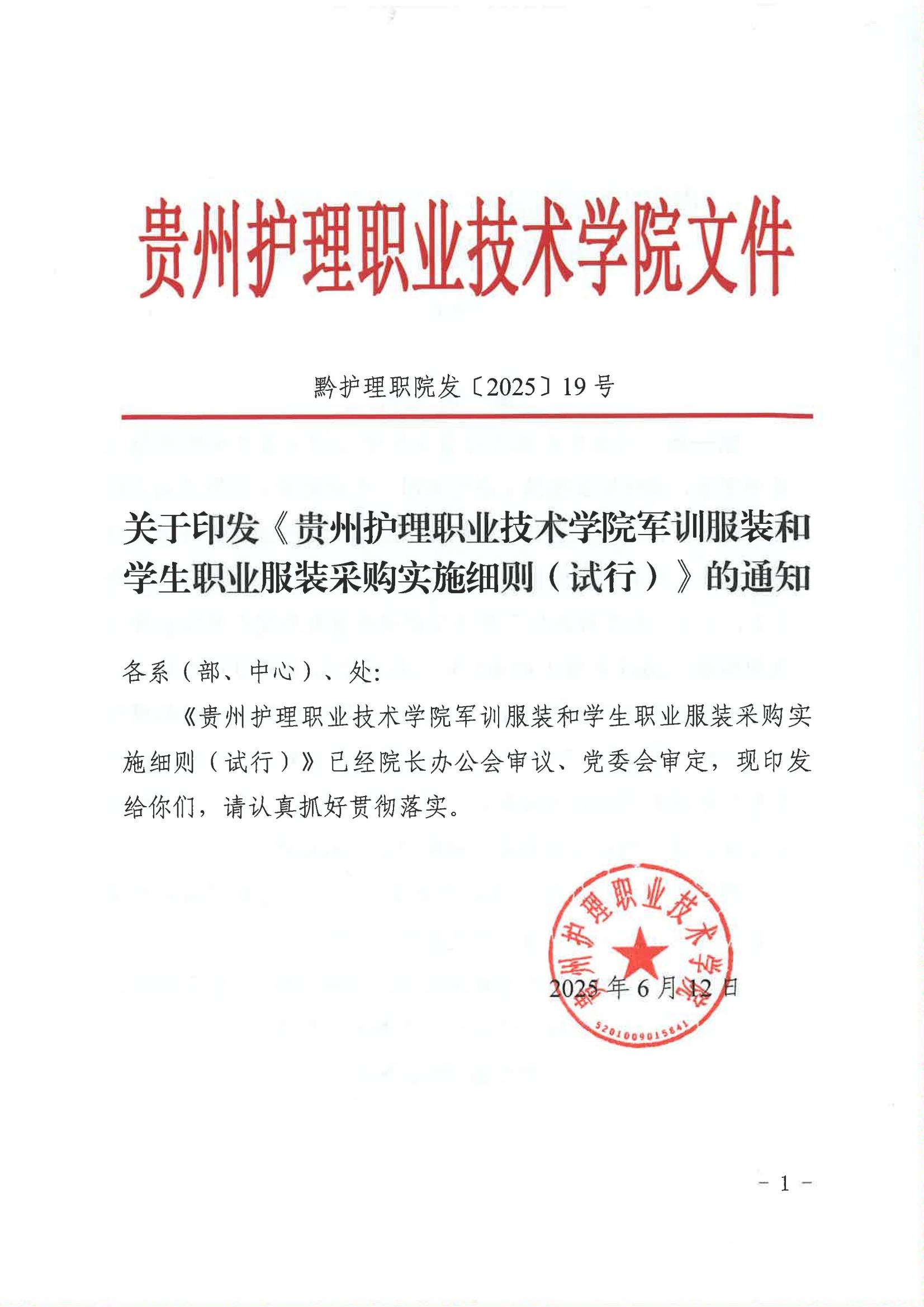 黔护理职院发〔2025〕19号关于印发《8181801威尼斯军训服装和学生职业服装采购实施细则(试行)》的通知.pdf