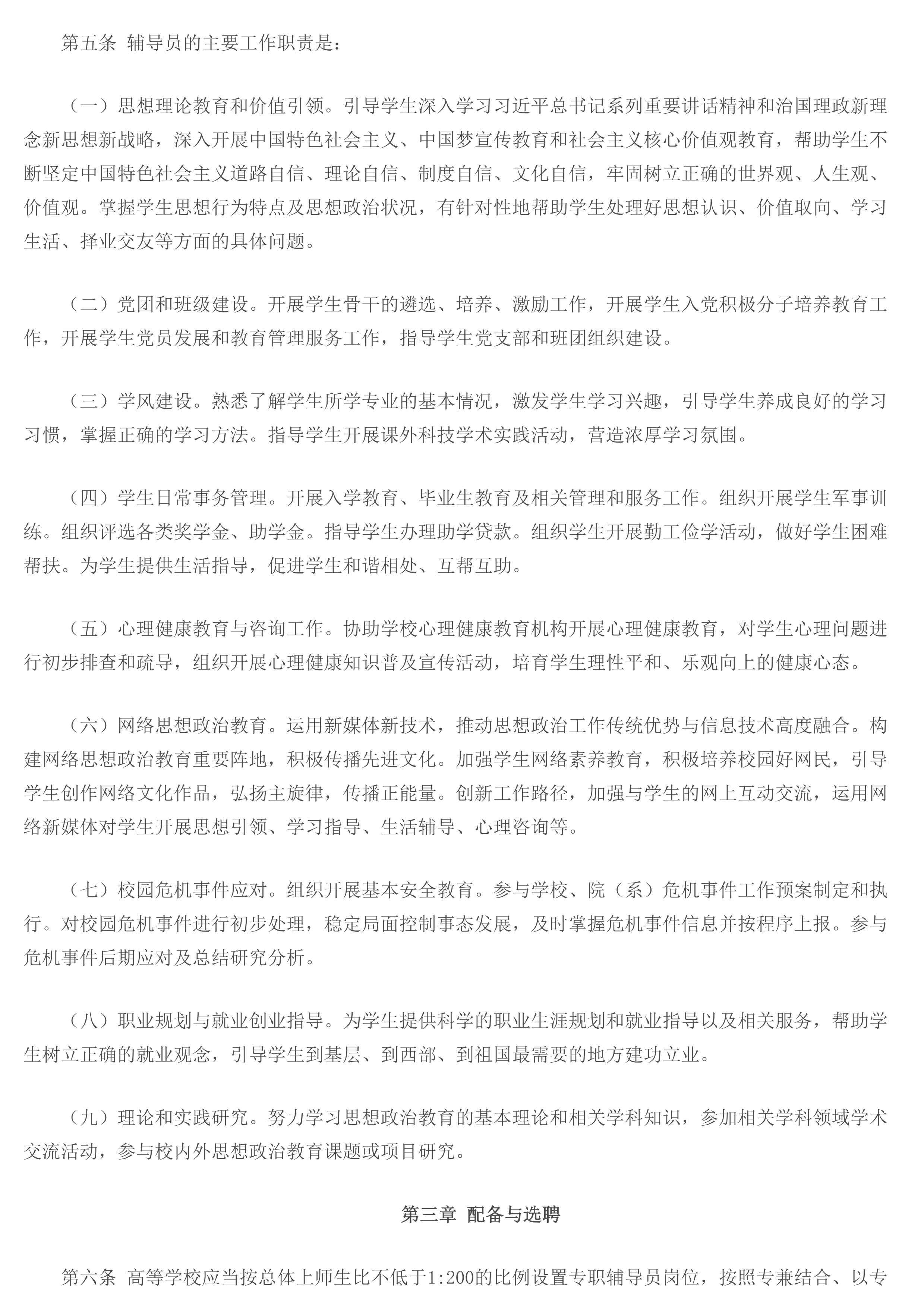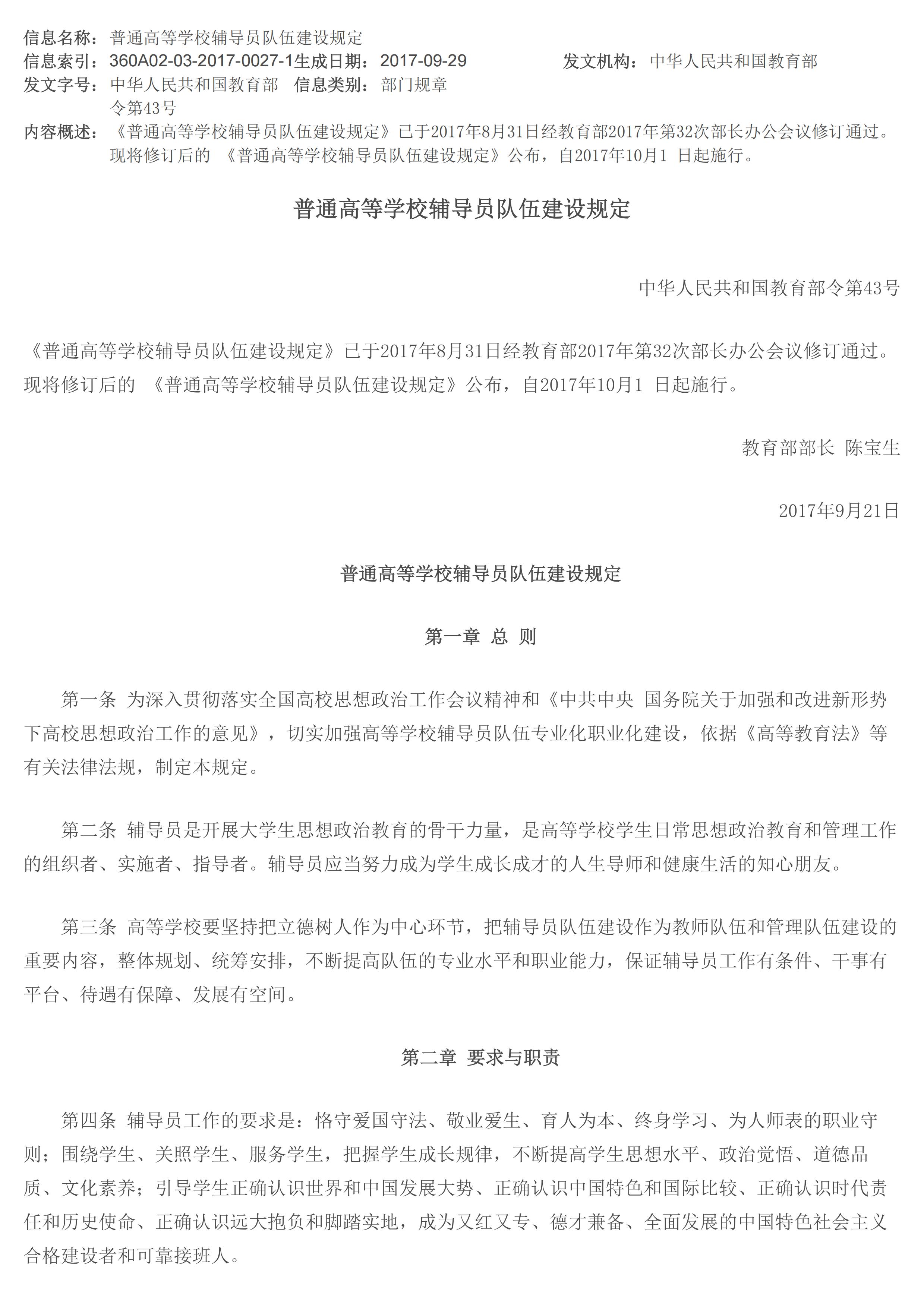 教育部令第43号:普通高等8181801威尼斯登录辅导员队伍建设规定