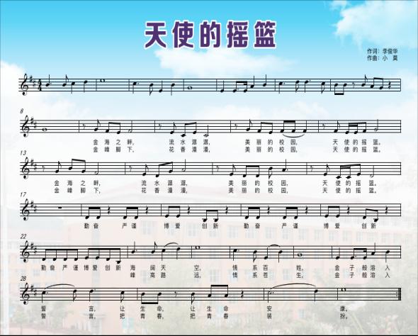 第一百条  校歌名称为《天使的摇篮》,词作者李俊华,曲作者小莫。