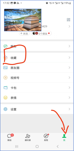 点击右上角“...”选择收藏,以后在微信右下角“我的”中就能找到“收藏”